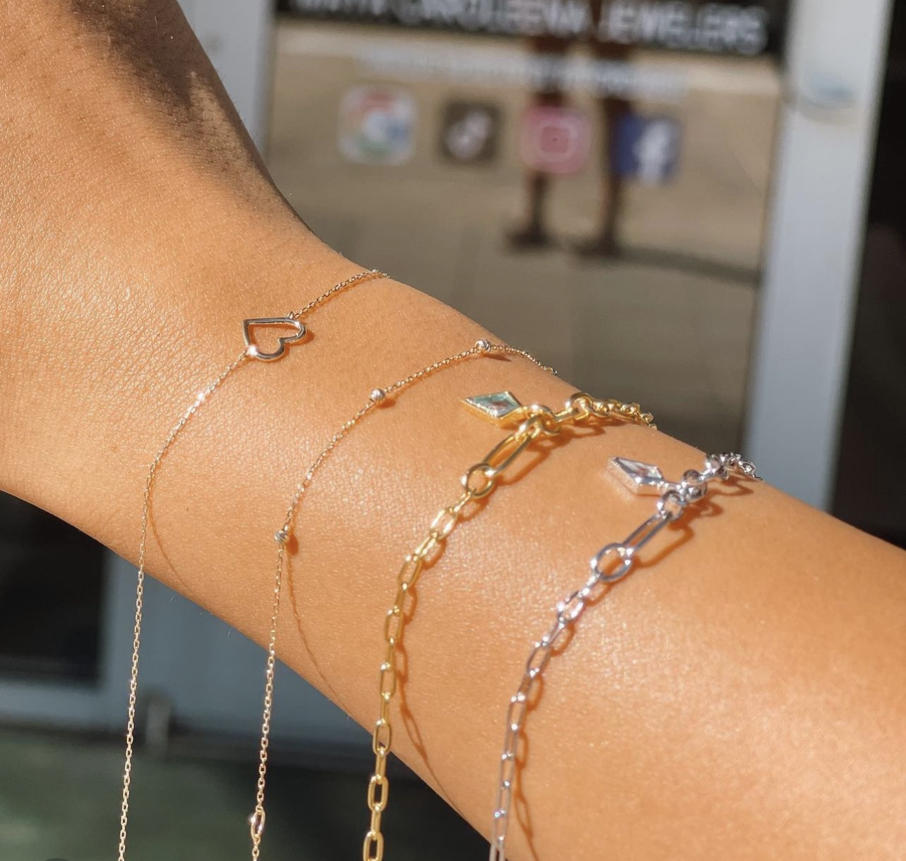 Explore our selections of Permanent Jewelry, custom fitted to you in-store as a bracelet, necklace, anklet & more! We offer materials such as Sterling Silver, Gold & Rose Gold in various designs & styles.